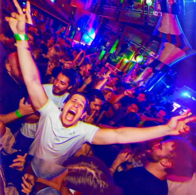 - A party crowd that mixes locals with international travellers